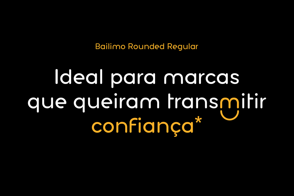 Bailimo Rounded Regular é uma tipografia inspirada e criada com o objectivo de ser a solução para projectos gráficos que buscam ter uma voz gráfica diferenciada, conferindo a comunicação uma sensibilidade amistosa e confiante.
